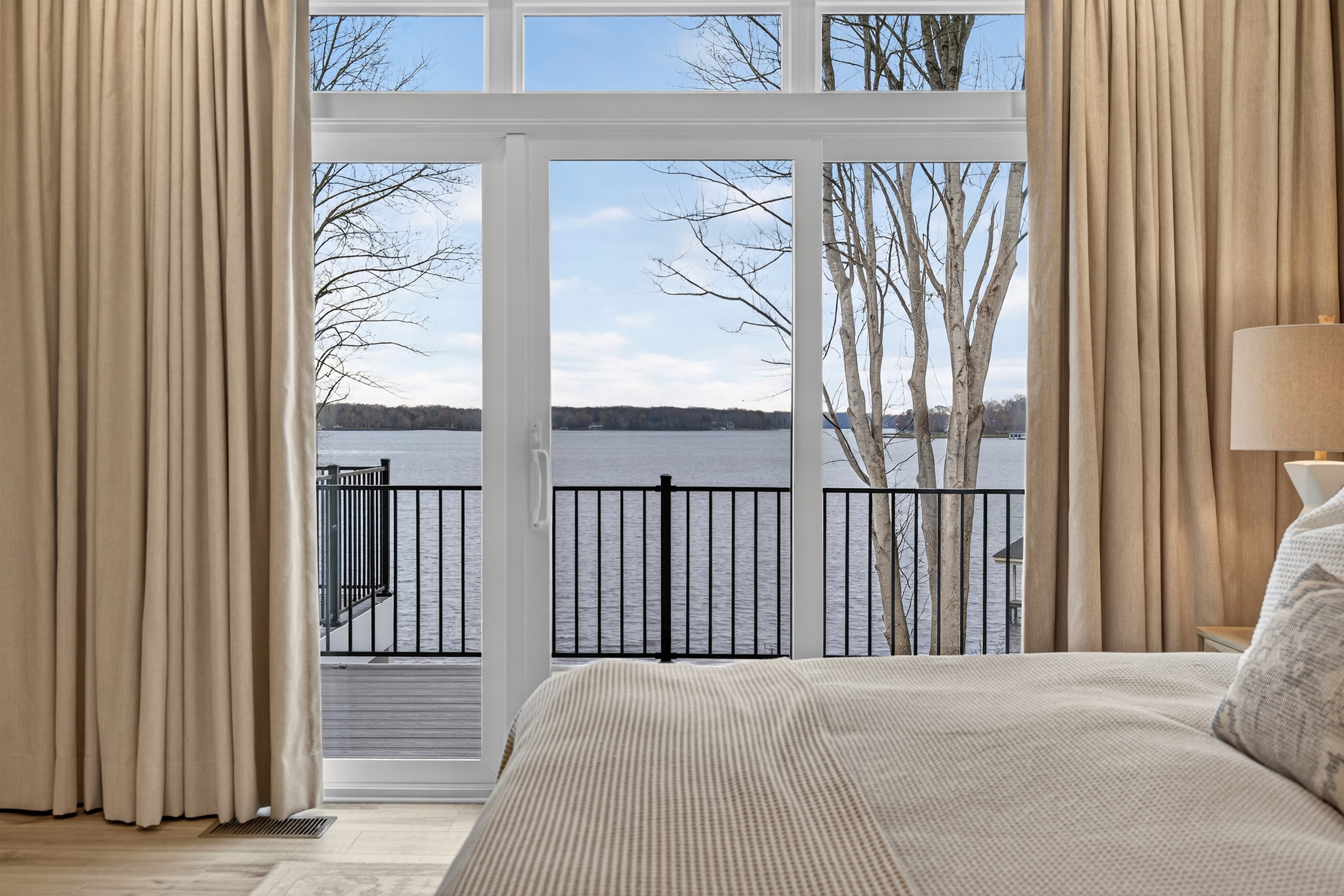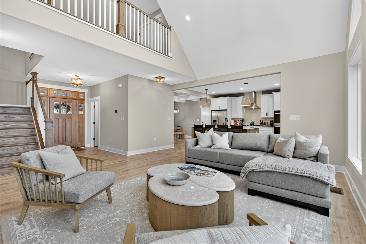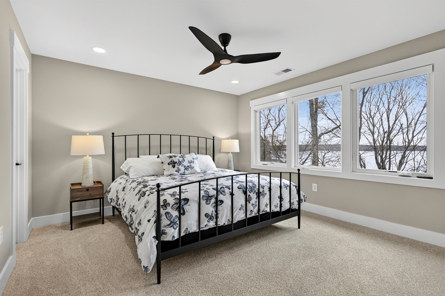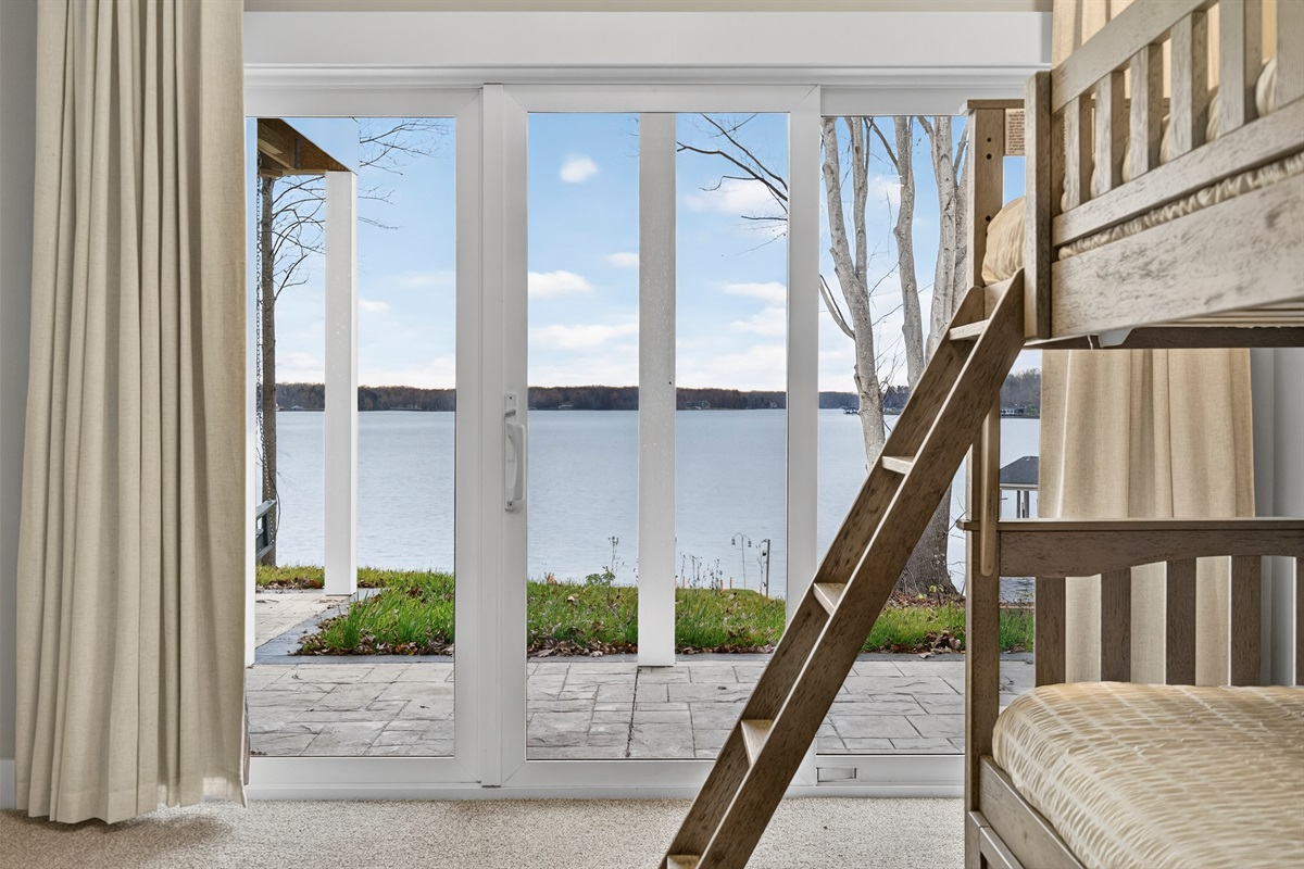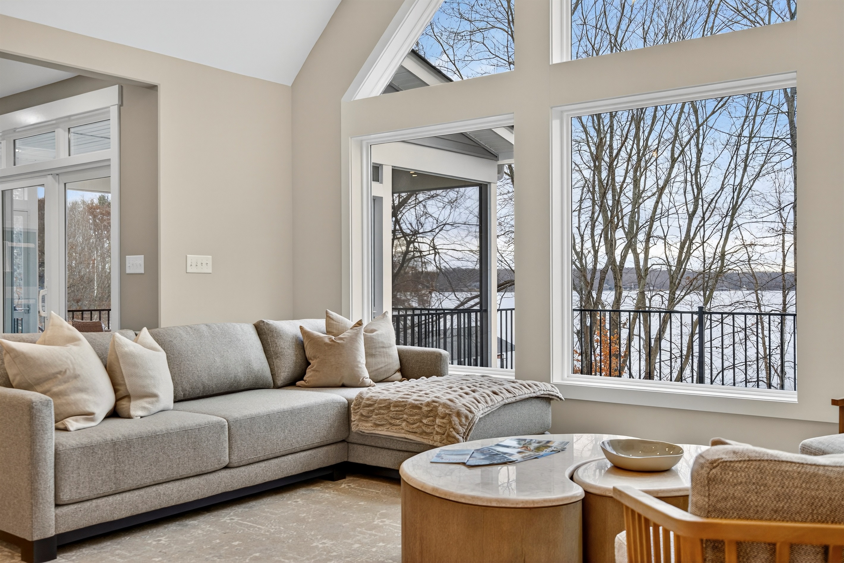 - Main level great room – Lake views, vaulted ceilings, fireplace