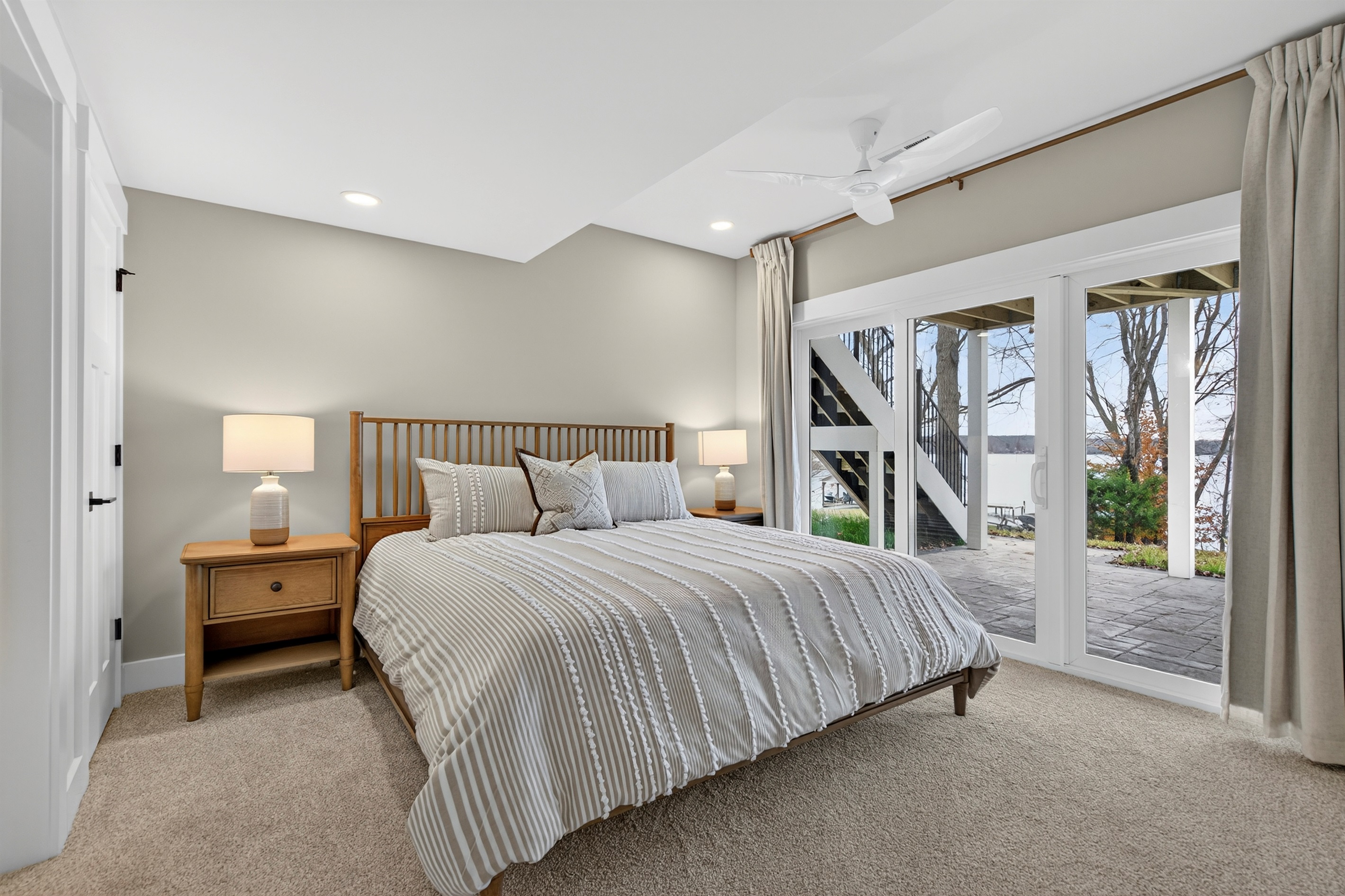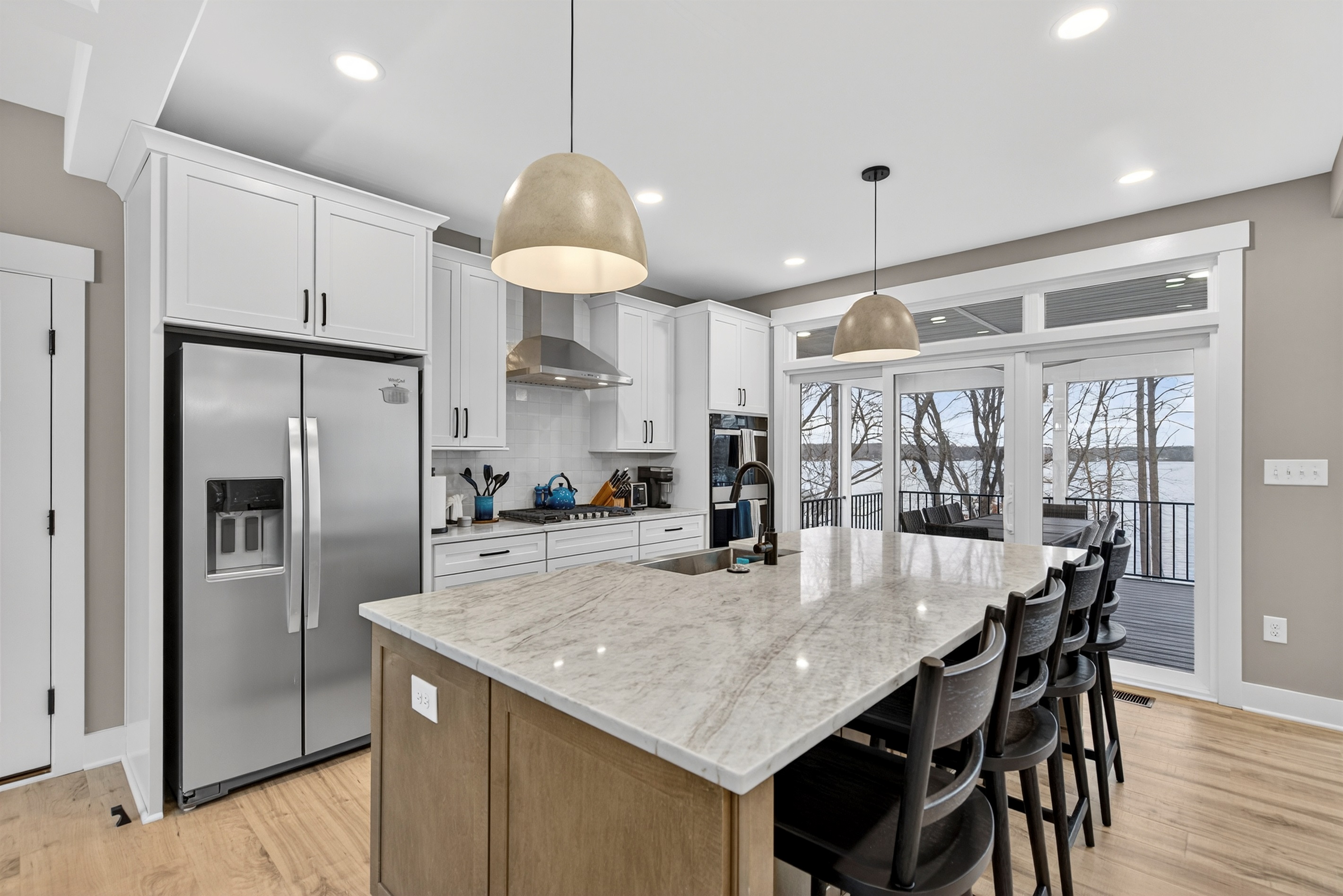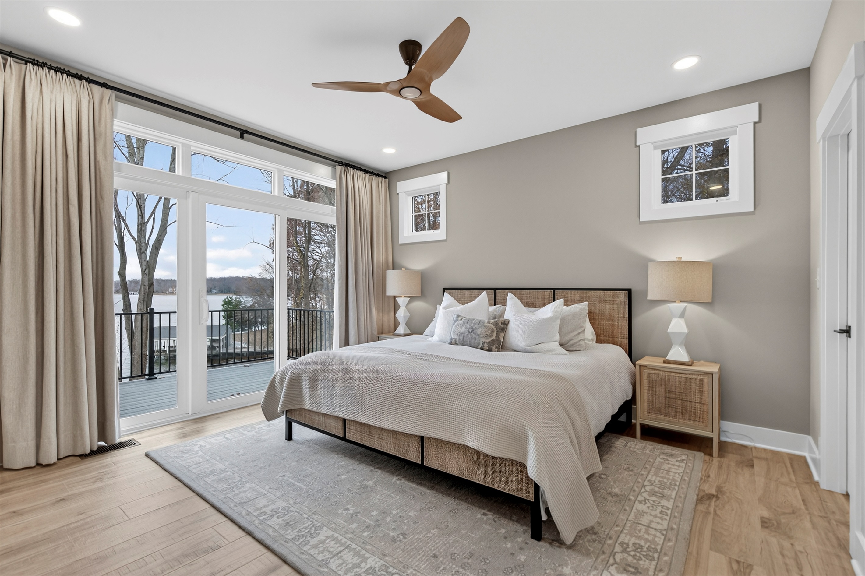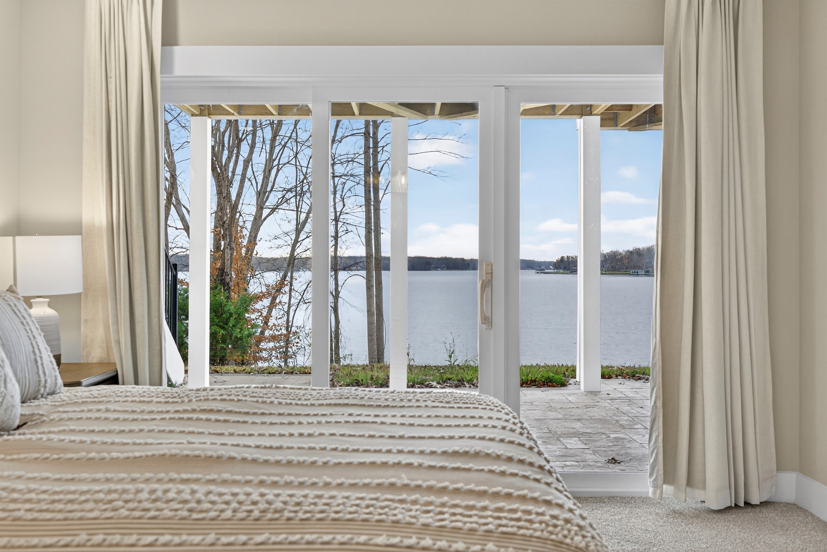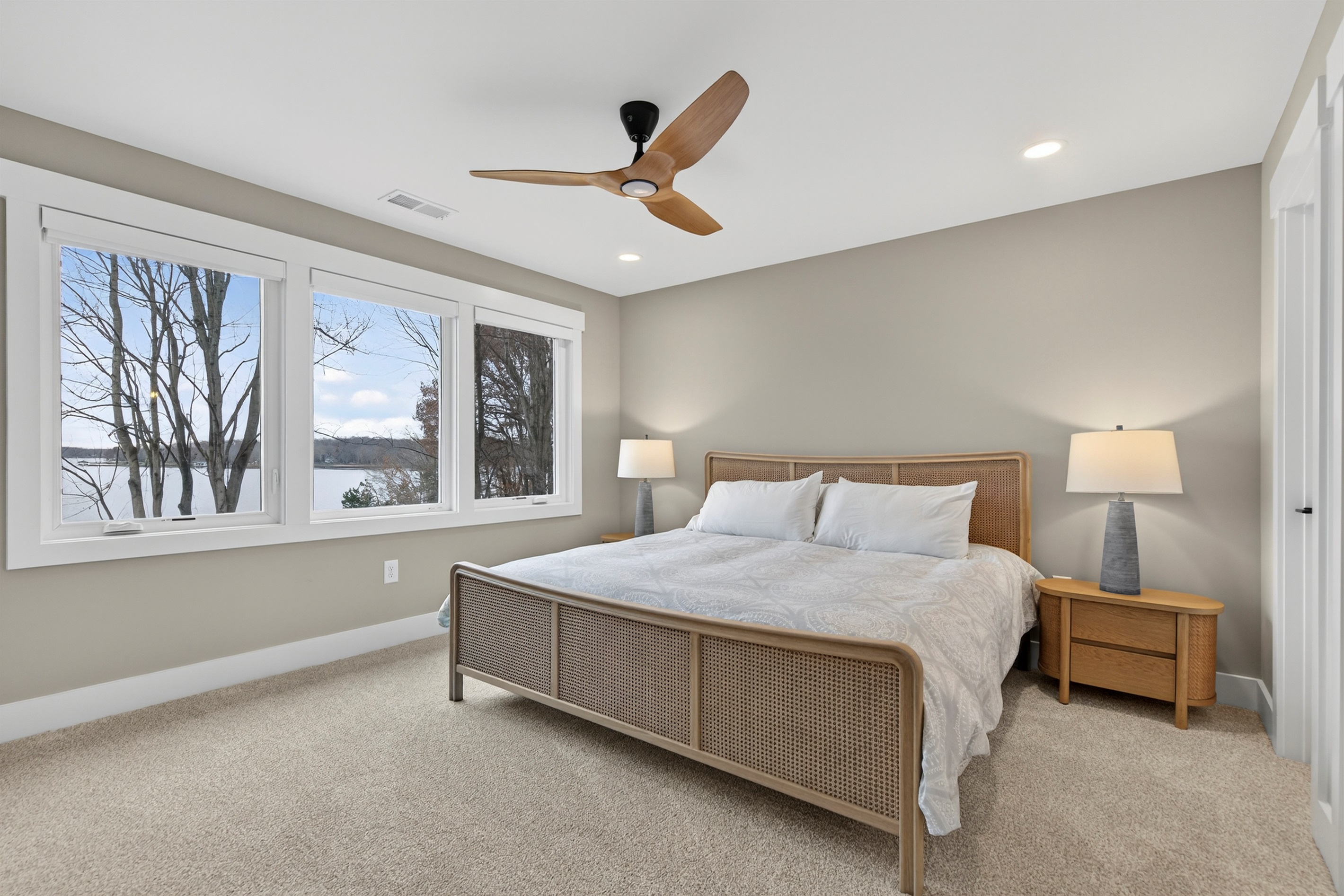 - Main level great room – Lake views, vaulted ceilings, fireplace