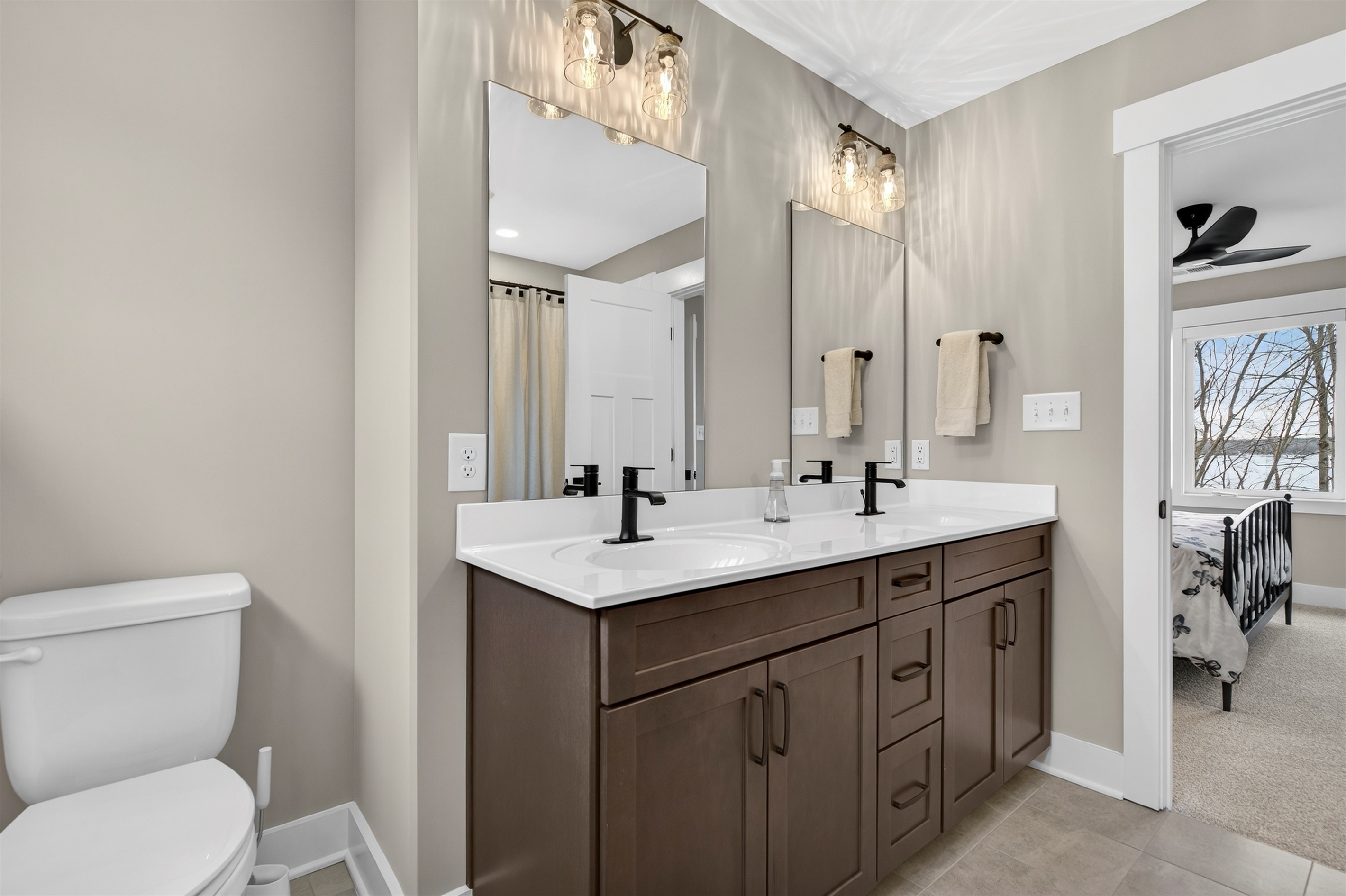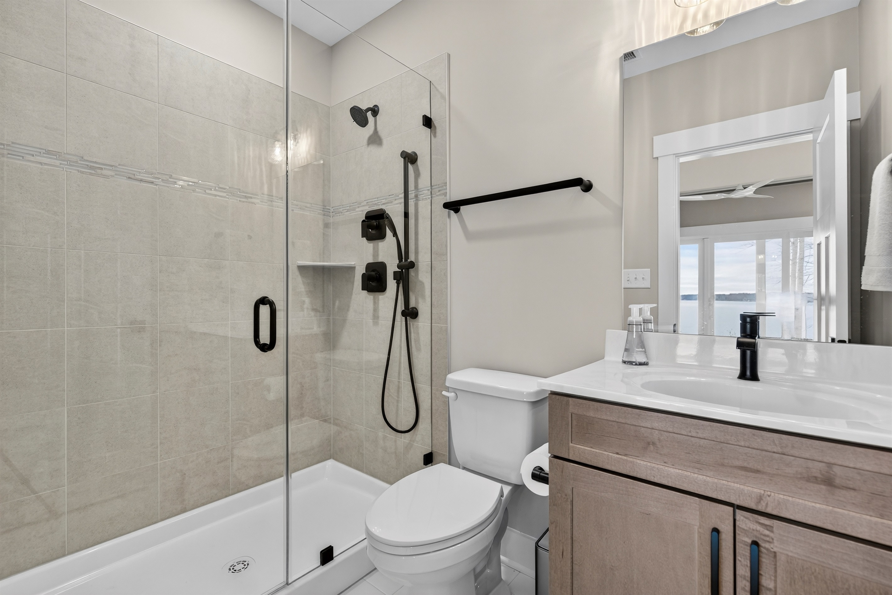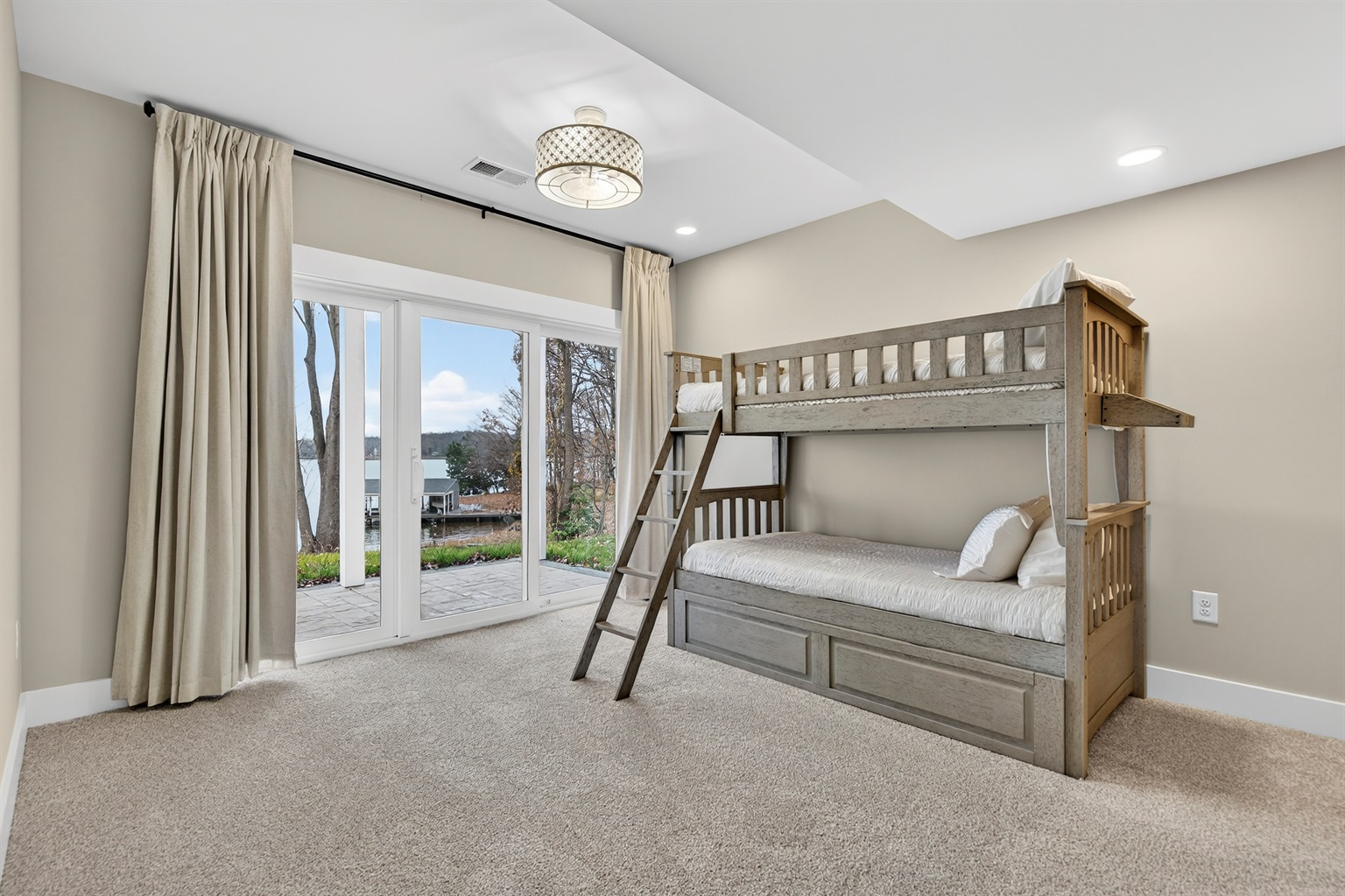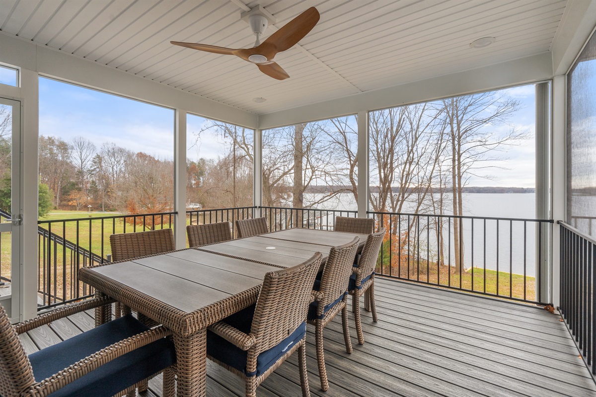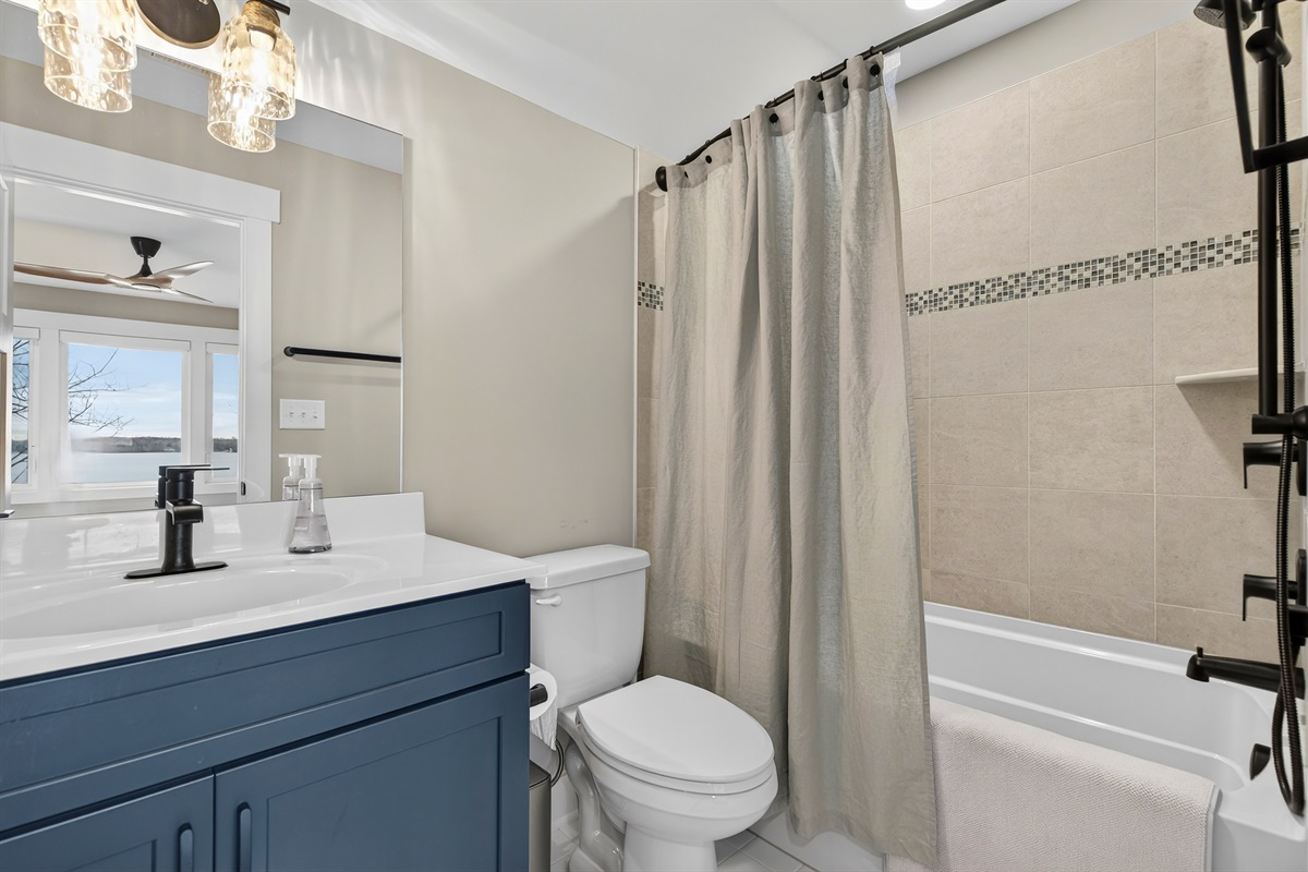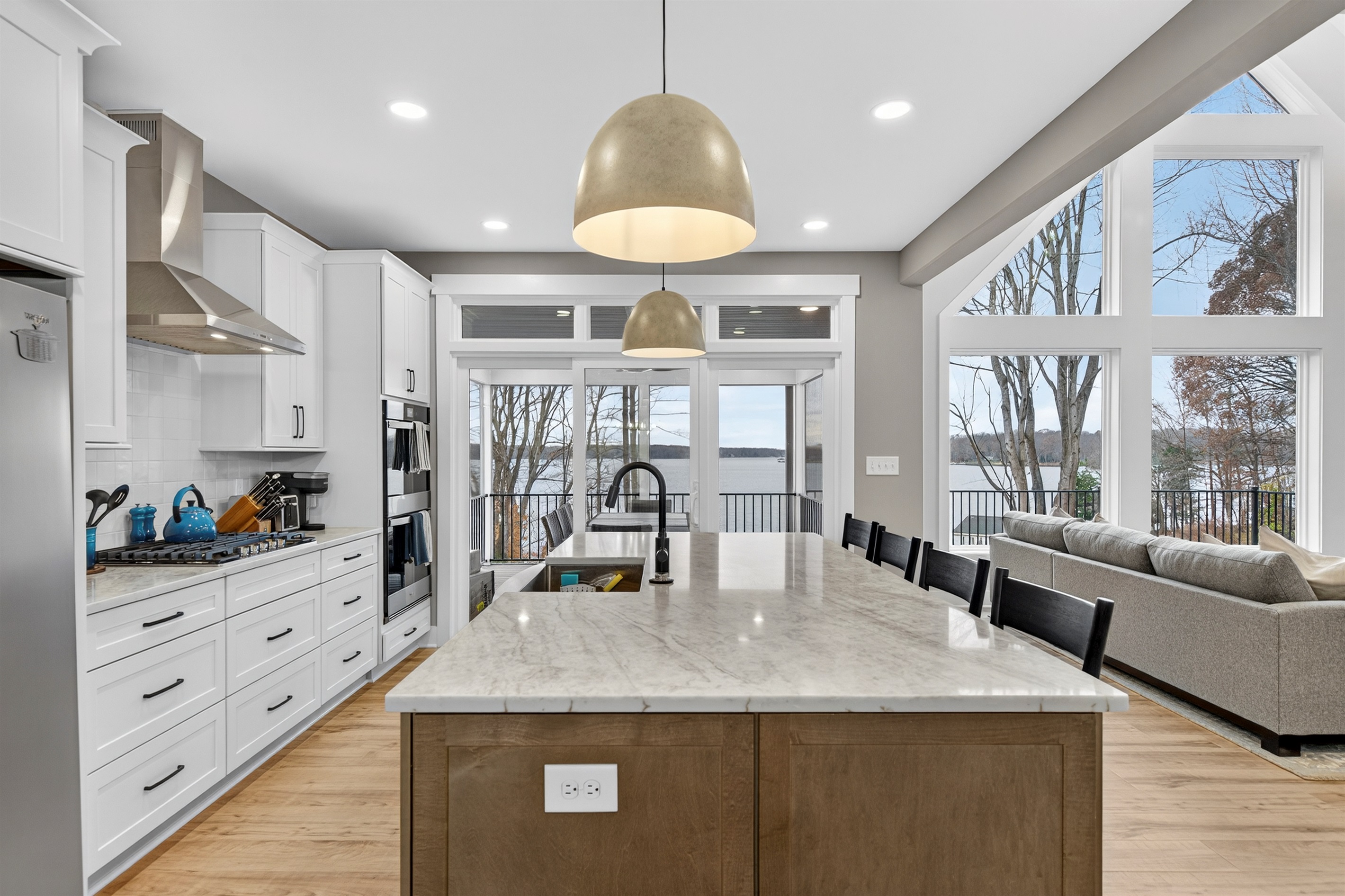 - Main level great room – Lake views, vaulted ceilings, fireplace